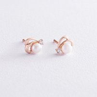 Золотые серьги (культивированный пресноводный жемчуг,фианиты)