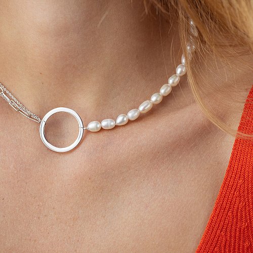 Срібне кольє "Кругообіг" з перлами 908-01442