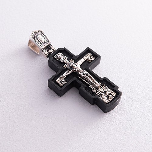 Срібний хрест "Розп'яття. Пресвята Богородиця" з ебеновим деревом 632
