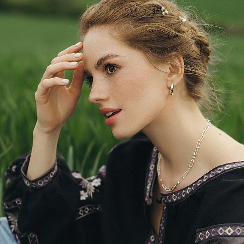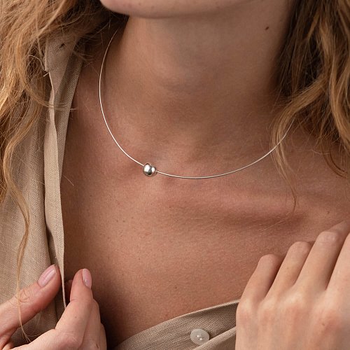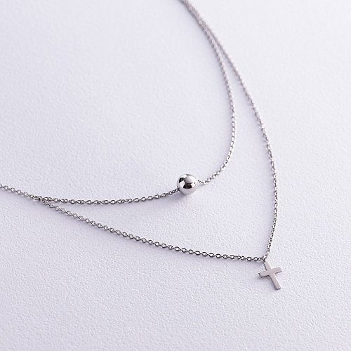 Подвійне срібне кольє "Куля і хрестик" 1093