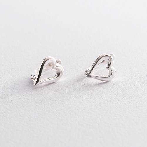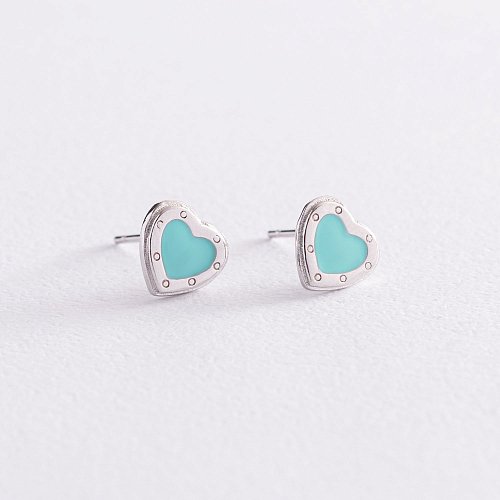Срібні сережки - пусети "Сердечка" з емаллю 123054