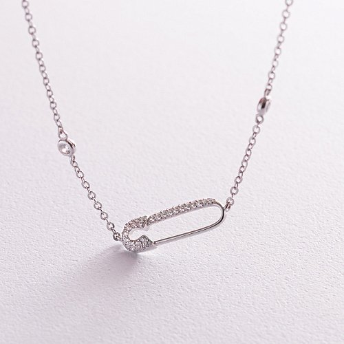 Срібне кольє - краватка з різнокольоровими фіанітами 181213