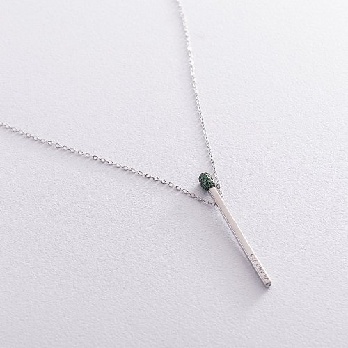 Срібне кольє "Сірник" (зелені фіаніти) 181099