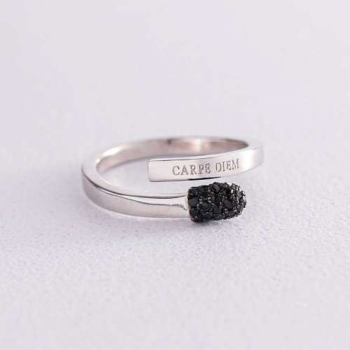 Срібна каблучка "Сірник" (чорні фіаніти) 112595