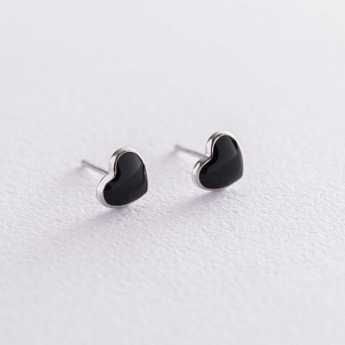 Срібні сережки - пусети "Сердечка" (емаль) 122846