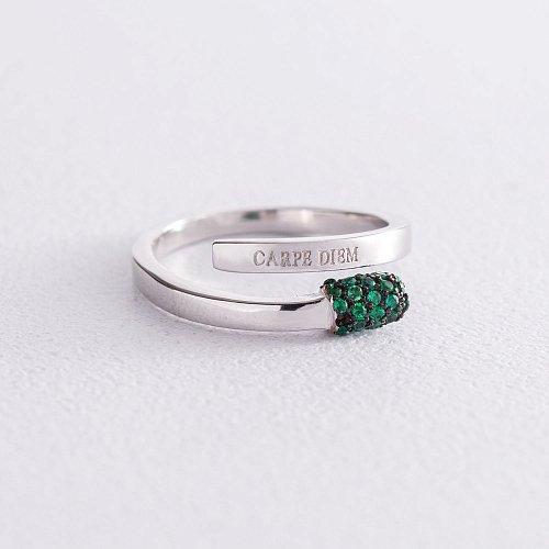 Срібна каблучка "Сірник" (зелені фіаніти) 112596