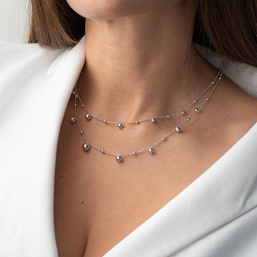 Подвійне срібне кольє "Кульки" 181067