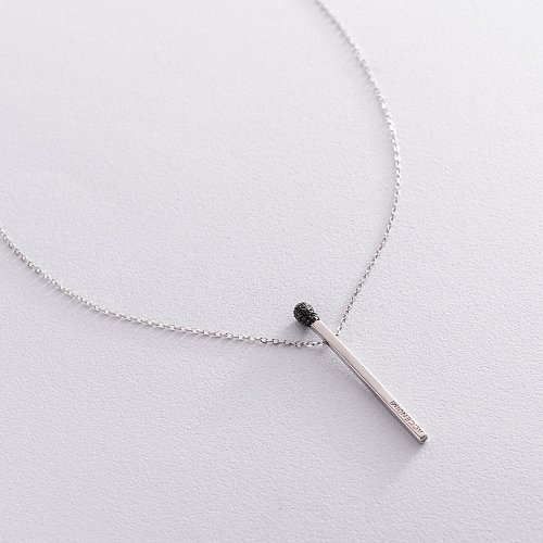 Срібне кольє "Сірник" (чорні фіаніти) 181100