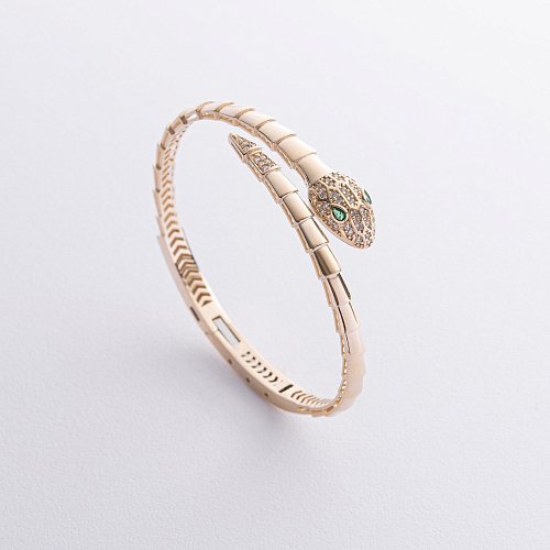 Жорсткий браслет "Змія" у жовтому золоті (фіаніти) б05513