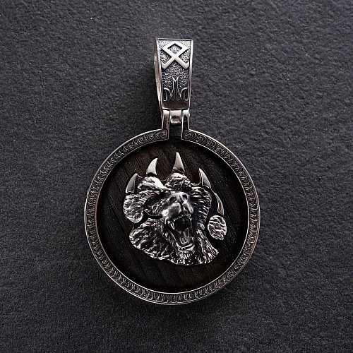 Срібний кулон "Ведмідь" з ебеновим деревом та фіанітами  947