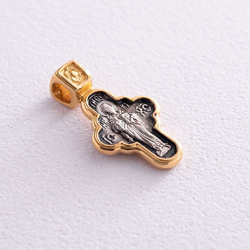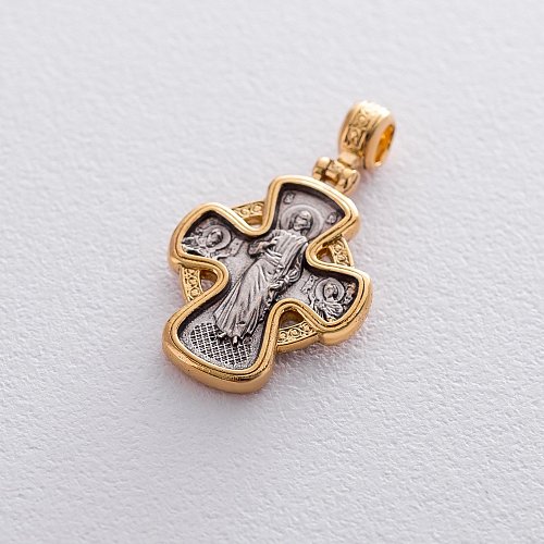 Срібний хрестик з позолотою "Господь Вседержитель. Ікона Божої Матері Семистрільна" 131453
