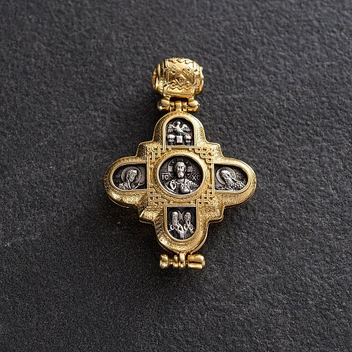 Срібний мощевик з позолотою "Господь Вседержитель. Божа Матір" 131805