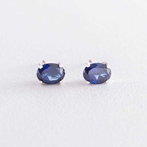 Срібні сережки-пусети з синт. сапфіром нано 6х8 121968
