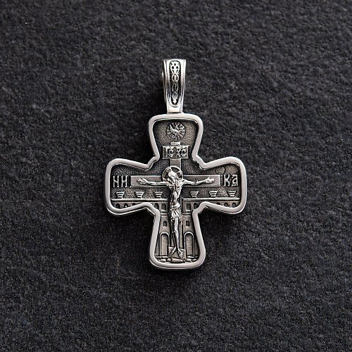 Срібний хрест "Спас Нерукотворнийий. Святитель Микола. Архангел Михаїл" 131348