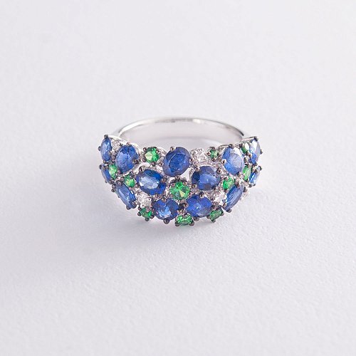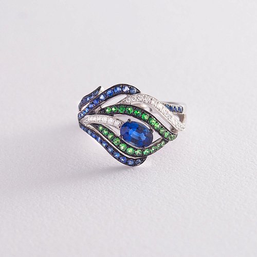 Золота каблучка з сапфірами, діамантами і уваровітами MR19563gm