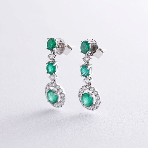 Золоті сережки зі смарагдами і діамантами DE3735Echa