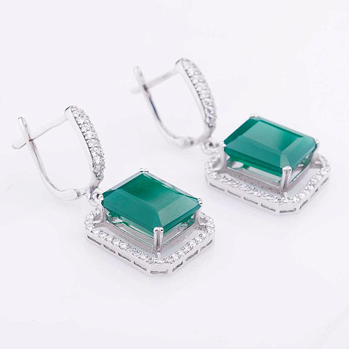 Золоті сережки з агатом і фіанітами с411