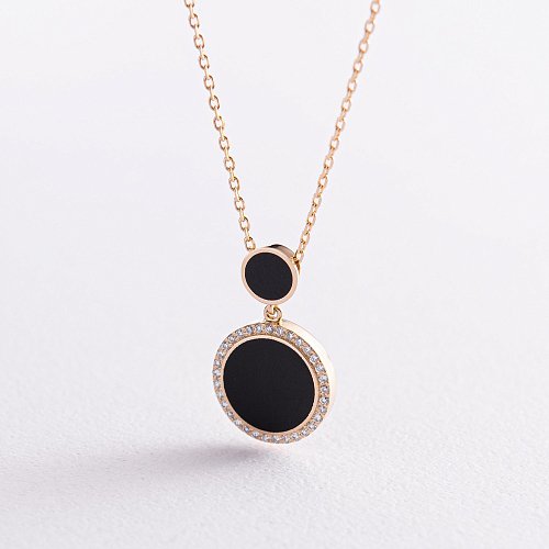 Золоте кольє з діамантами та емаллю 722813121