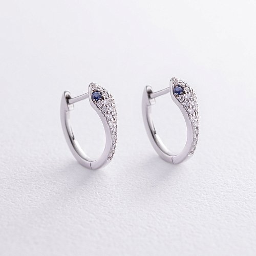 Золоті сережки "Змії" з діамантами і сапфірами сб0461ca