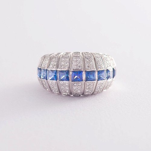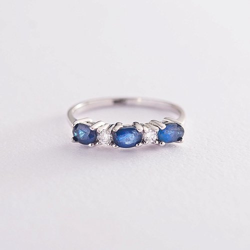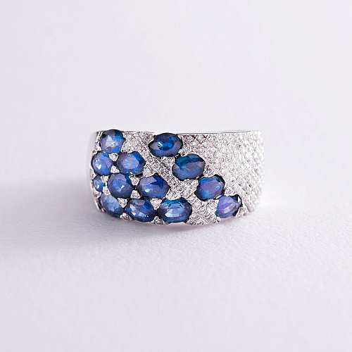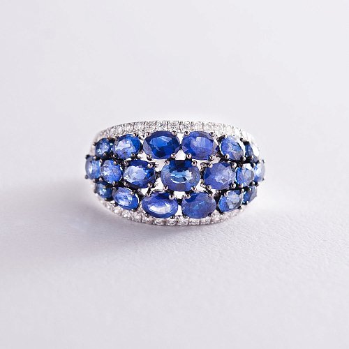 Золота каблучка з синіми сапфірами і діамантами м0725