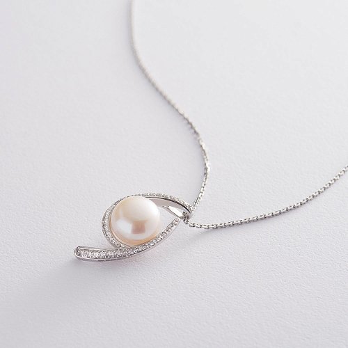 Золота підвіска з перлами і діамантами пжд3-090