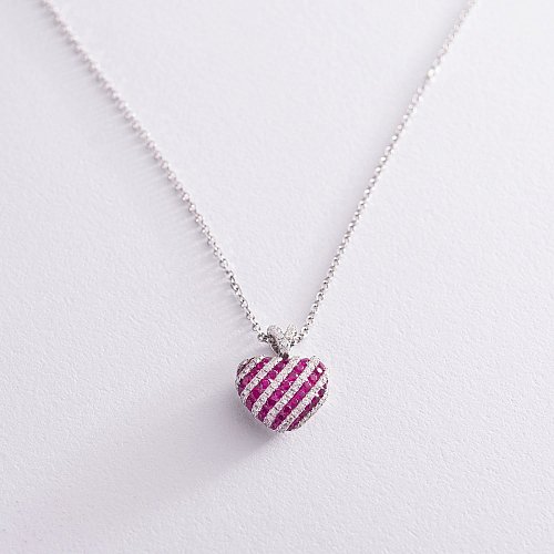 Золотий кулон "Серце" з діамантами та рубінами п315