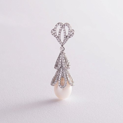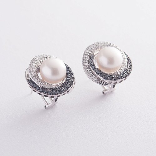 Золоті сережки з перлами і діамантами с1420