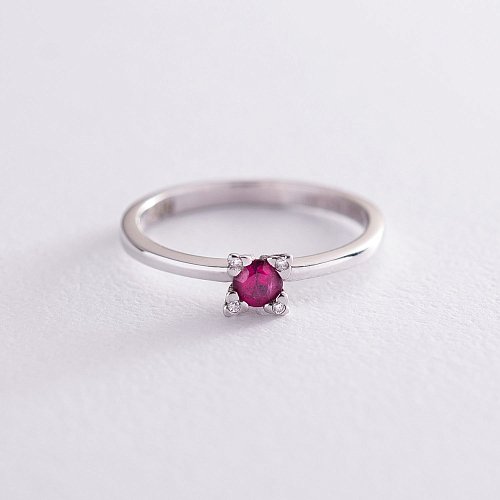 Золота каблучка з рубіном і діамантами км0379