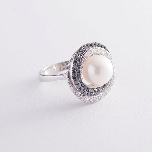 Золота каблучка з перлиною і діамантами к1009