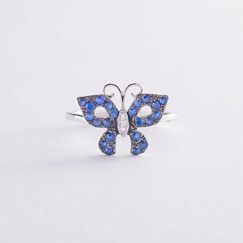 ? Золота каблучка "Метелик" (сапфір, діамант) кб0329ha