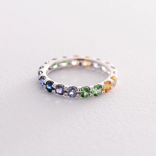 Золота каблучка з сапфірами і демантоїдами кб0298sth