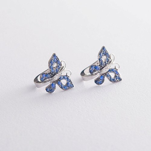? Золоті сережки "Метелики" (сапфір, діамант) сб0321ha