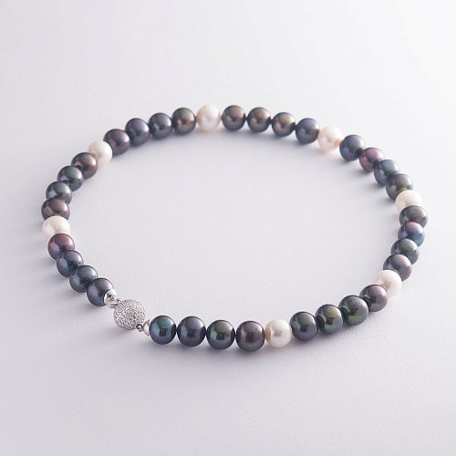 Кольє з перлів з фіанітами бус729