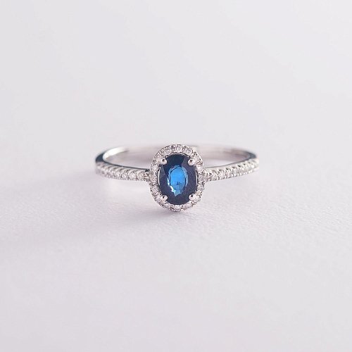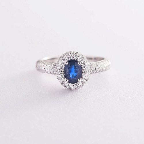 Золота заручальна каблучка з сапфіром і діамантами к222б