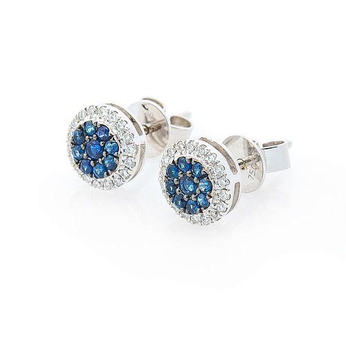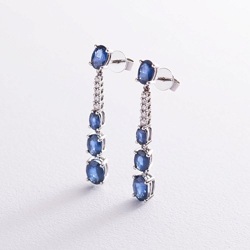 Золоті сережки-пусети (сапфір, діамант) сб0046са