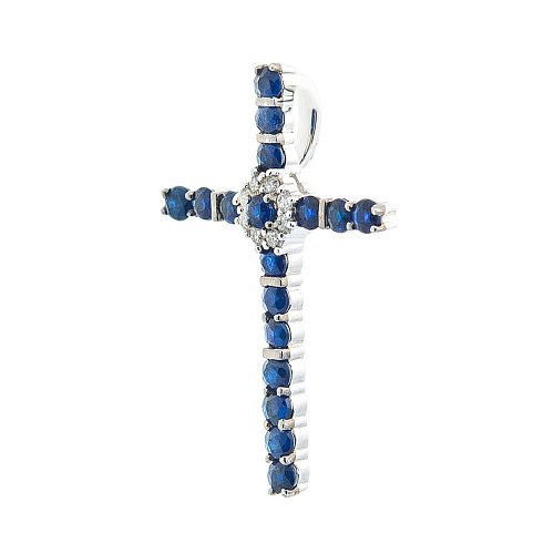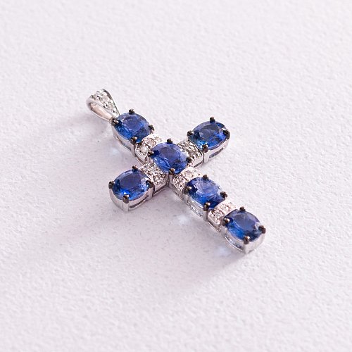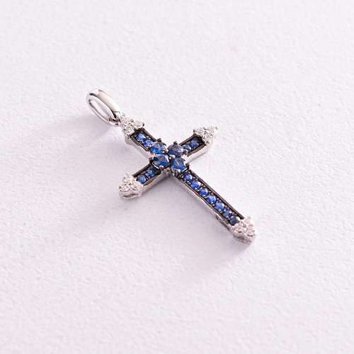 Золотий хрестик з синіми сапфірами і діамантами 1П759-0149
