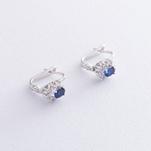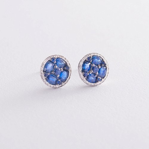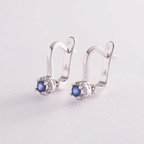 Сережки-пусети золоті з сапфірами і діамантами LDE0438-p