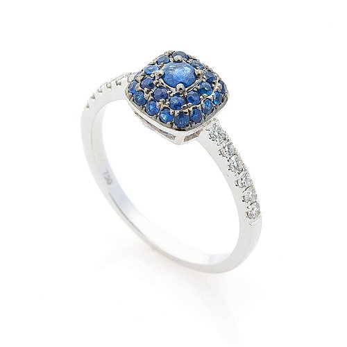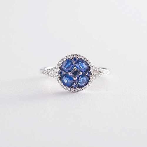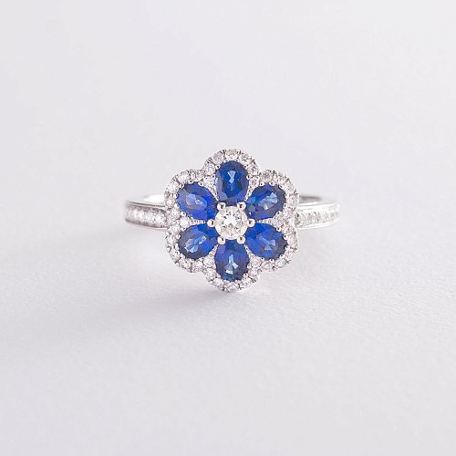 Золота каблучка "Квітка" з сапфірами і діамантами кб0056mi