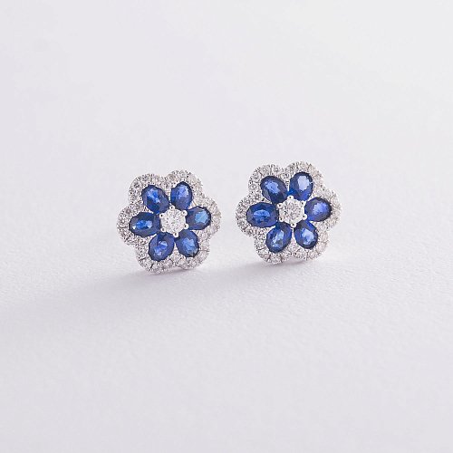 Золоті сережки-пусети "Квіточки" (сапфір, діамант) сб0199mi