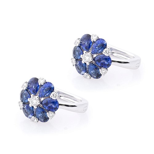 Золоті сережки з сапфірами і діамантами "Квітка" сб0068gm
