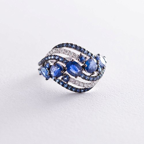 Золота каблучка з сапфірами і діамантами кб0091gm