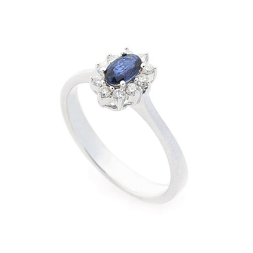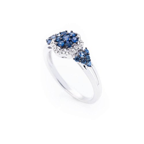 Золота каблучка "Квітка" з сапфірами і діамантами кб0088gm