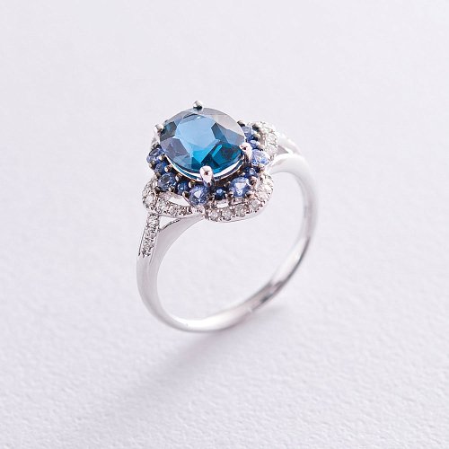 Золота каблучка з топазом, діамантами і сапфірами кб0086A1