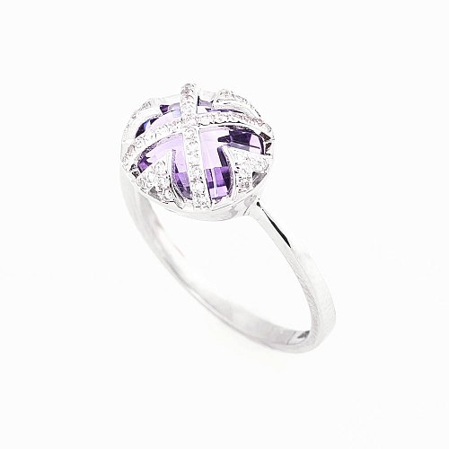 Золота каблучка з аметистом і діамантами C01099R/ам