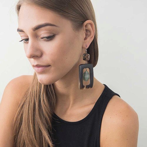 Сережки з агатом, кварцом димчастим і слоновою кісткою с318с24