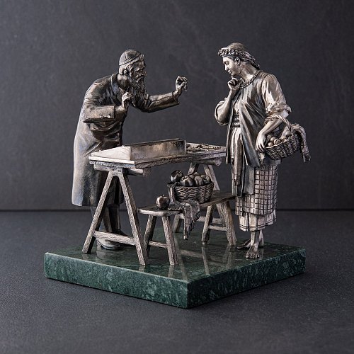 Срібна фігура ручної роботи "Ведмедиця мама з ведмежатами" 23162