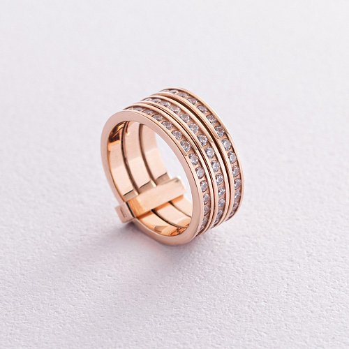Потрійна каблучка з червоного золота з фіанітами к02642