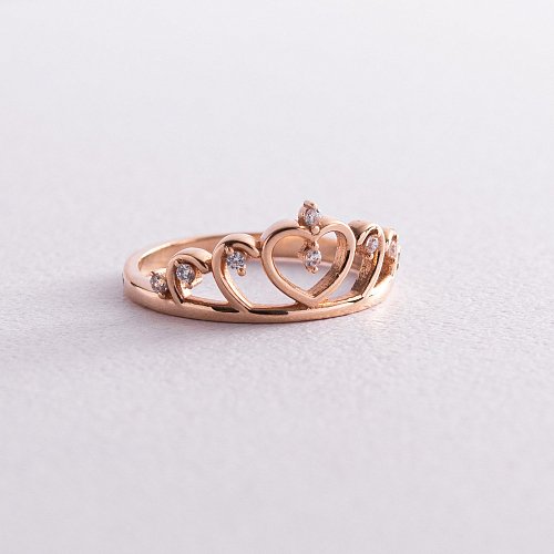 Золота каблучка "Корона" з фіанітами к03934