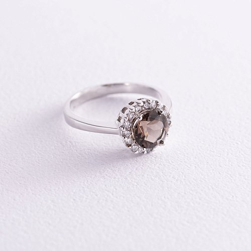 Золота каблучка (димчастий топаз, фіаніти) к02124б
