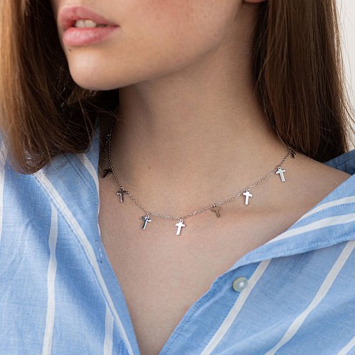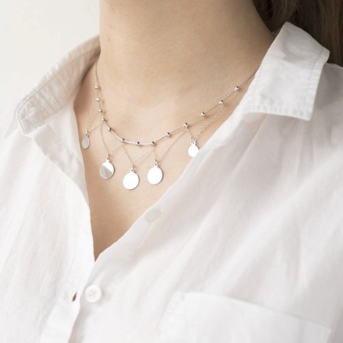 Подвійне срібне кольє "Монети" (можливе гравіювання) 181010